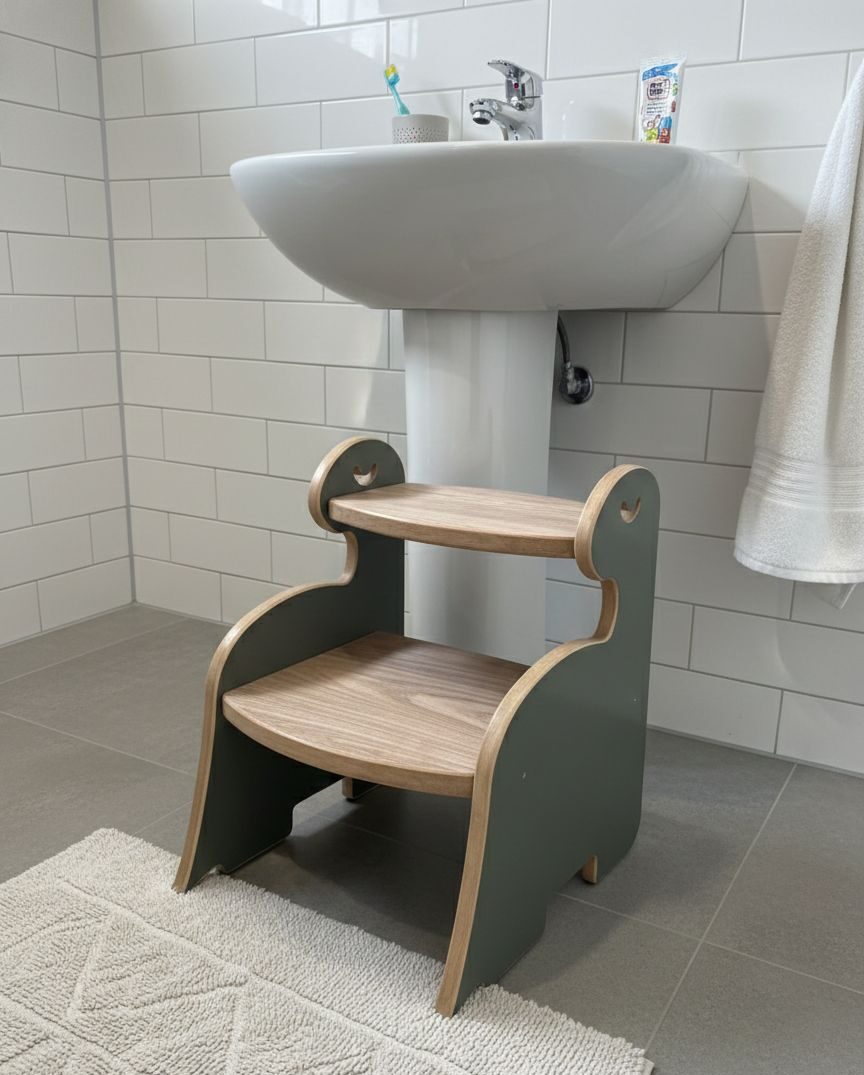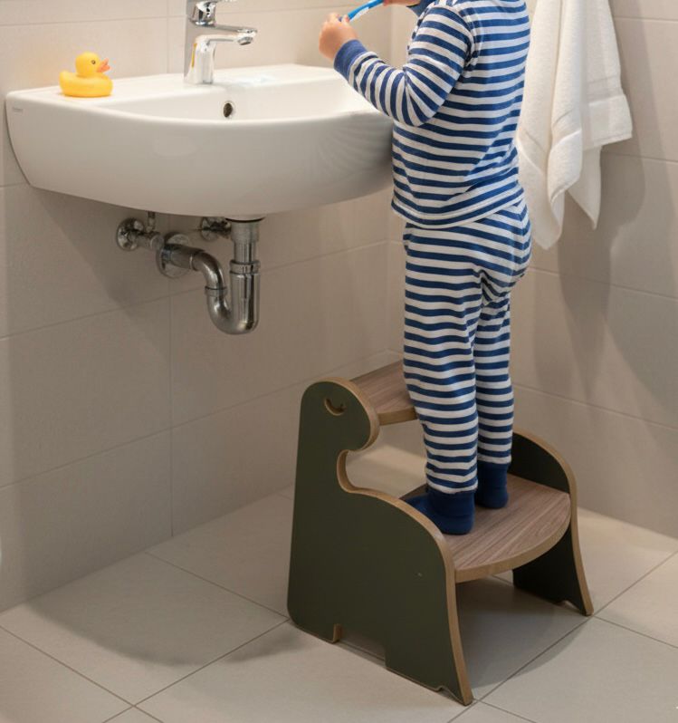 El Banquito Dino es un banco infantil con diseño divertido de dinosaurio, pensado para que los más pequeños puedan alcanzar la pileta, estantes o usarlo como asiento en sus actividades diarias. Es liviano, fácil de mover y también funciona como elemento decorativo para habitaciones infantiles.